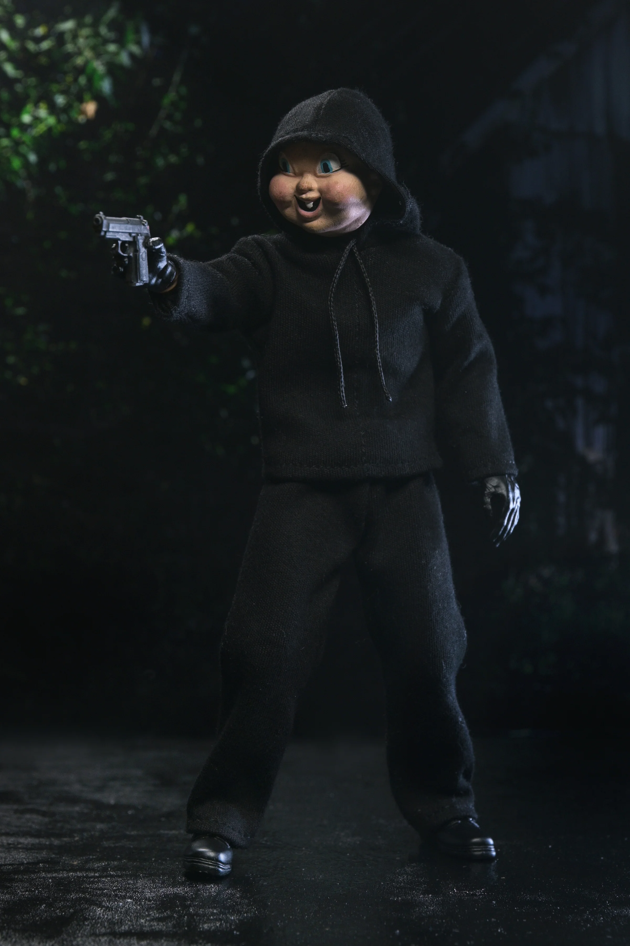 Relive a modern horror classic over and over again…on your shelf! From Blumhouse's Happy Death Day and Happy Death Day 2U, NECA presents this retro-style clothed action figure of the Bayfield Babyface Killer. Don’t let that face (or name) fool you! There’s nothing cute or innocent about this ruthless killer. Dressed in tailored fabric clothing inspired by vintage toy lines, this fully articulated, 8-inch scale figure includes interchangeable masks, heads, hands, kitchen knives, baseball bat, sledgehammer, birthday cupcakes, and pistol. Comes in collector-friendly window box packaging.