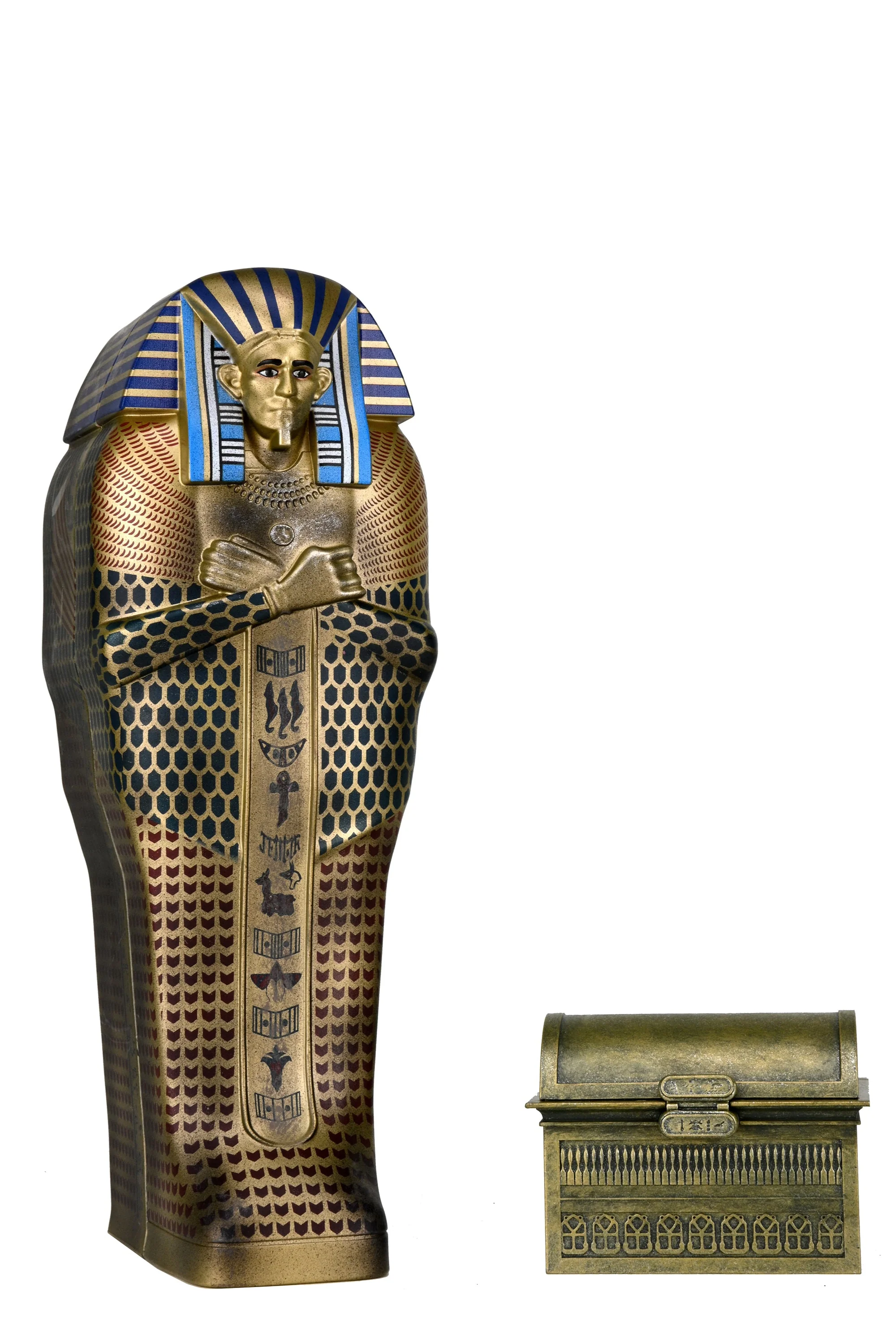Build even bigger scenes and dioramas with this accessory set for NECA’s Universal Monsters The Mummy action figure! The star of the set is the elaborate sarcophagus, which measures over 9” inches tall and has a removable lid with movie accurate deco and intricate printed pattern. The set also includes a larger opening chest that measures 2.5”x 3”. Closed box packaging. (Figure sold separately.)